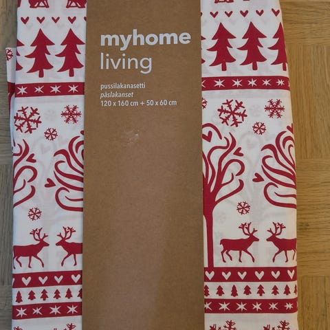 Koko pussilakana: 110×80. Tyynyliina: 60×40. Hyvä kunto. Myynnissä myös tähän sopiva peitto.