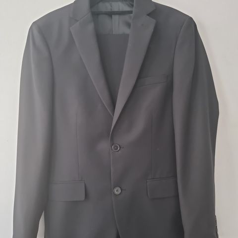 Hyvässä kunnossa olevat puvun takki ja housut. Takki kokoa 46 ja housujen leveys 29, pituus 32.