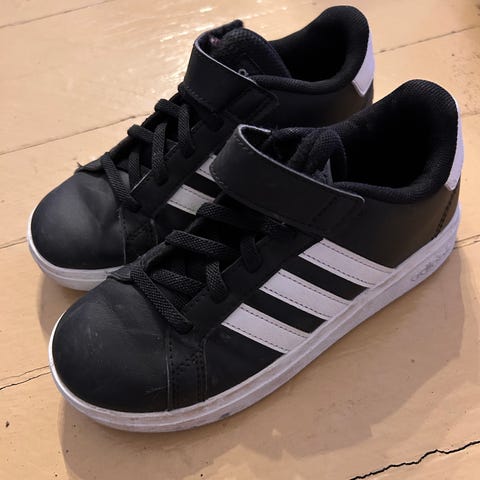 Mustat ADIDAS tennarit, käy tytölle tai pojalle. Koko 30,5. Nauhat vaihdettu pikalukituksella oleviin joustaviin kauhoihin. On helppo pukea itse päälle! Ehyet ja hyväkuntoiset!