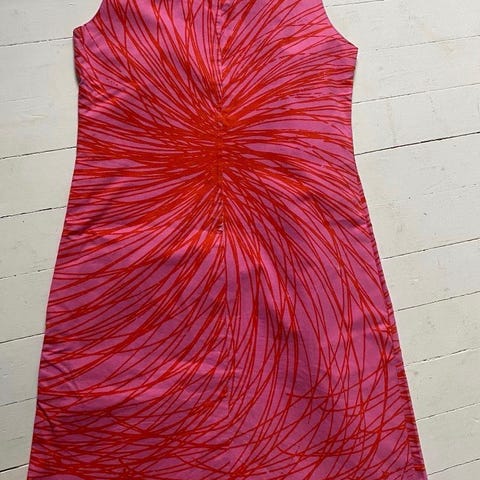 Vuokko hihaton mekko vuodelta -77. Erittäin vähän käytetty. 4cm leveästä vyöstä erillinen kuva. Sivusaumoissa taskut. Kangas vahva, 100% puuvilla. Pituus 100cm. Kai- kai mitta 43cm. Nouto tai postitus.