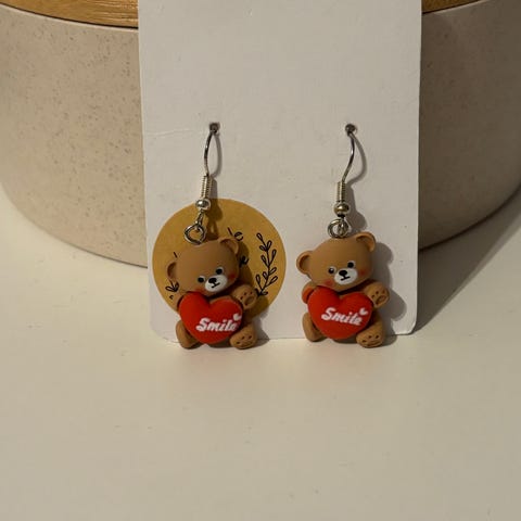 Myydään sydän nappikorvikset, materiaali fimo. Itse tehdyt, kevyet.