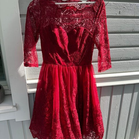 Korallin pinkki pitsinen juhlamekko. Vain nouto ja käteinen