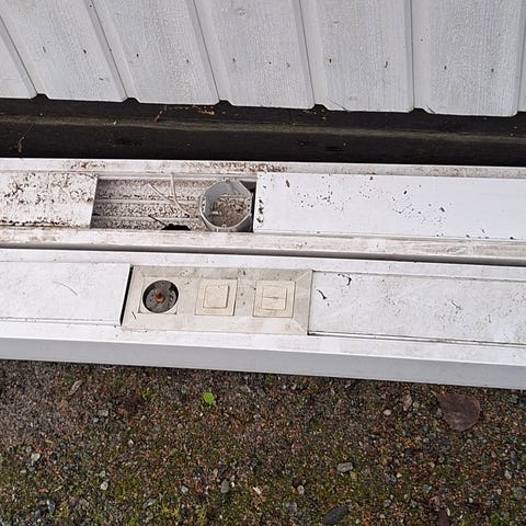 Kuvan vanhat sähkö- ja puhelinpistorasiat.
