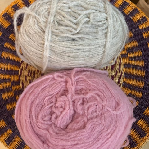 Hahtuvalankoja, pääasiassa vaaleaa harmaata, lisäksi tumman harmaata ja hiukan punaista, yhteensä 650 gr. Hinta 50 EUR