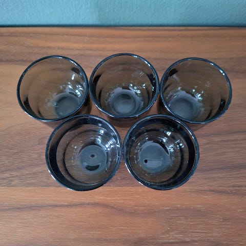 Myydään k. 4,9 cm h. 5,2 cm Kaj Franck Nuutajärvi Fasetti snapsilasit 4 kpl.