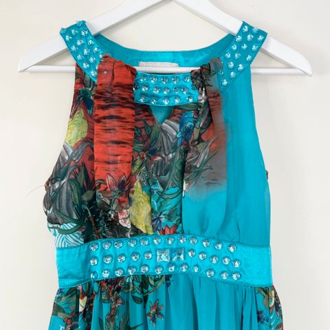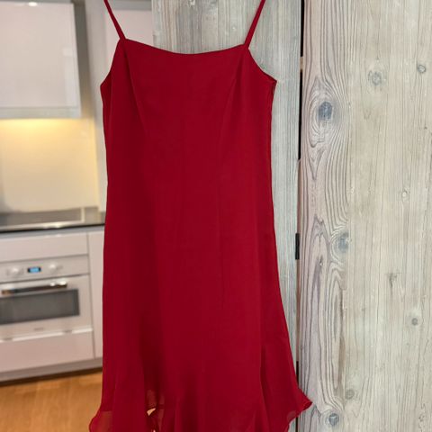 Minimekko. Valmistettu USA:ssa, merkki: Unaluna Collection. Materiaaleina polyesteri ja spandex. Kauniit laskokset. Käytetty aikoinaan vain kerran häissä. Kokomerkintä M, mutta istuu paremmin "eurooppalaiselle" S-kokoiselle / koko 36.