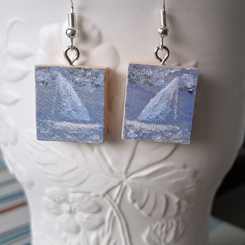 Hopeiset purjevene korvakorut koukulla. Hopea 925. Kesäiseen menoon. Hinta 15 e + postitus