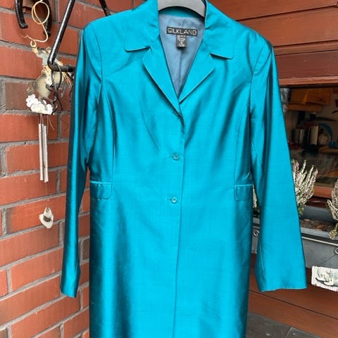 Vähänkäytetty Vera Mont silkkijakku koko 44. Väri turkoosi. 100 % silkki. Kainalo - kainalo n. 57 cm, hartia - hartia n. 43 cm ja pituus n. 65 cm. Nouto tai postitus. Postikulut ostajalle. Jakku, bleiseri