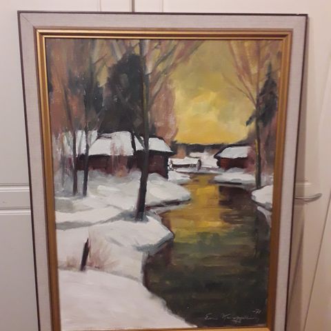 Eero Kemppaisen maalaus vuodelta 1959. Koko kehyksineen 73 x 61 cm. Kaunis taulu mutta ei mahdu enää seinälleni.