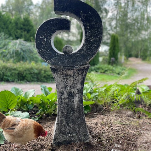 Tämä ostettu muistaakseni kymmenisen vuotta sitten sasus playhousista. Myyjän mukaan jonkun viidakon temppelin alkuperäisestä patsaasta tehty kopio. Painava. Koko noin 45 cm korkeus, 25 halkaisija. Ollut tuon näköinen jo uudesta. Pidetty sisätiloissa, menestynee ulkonakin. En lähetä. Mmm.