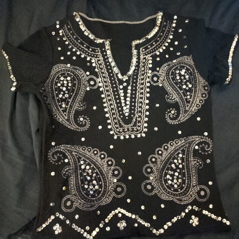 Paljettihuppari, mustat raidat samettia. Koko reilu S. Kerran käytetty. Postitus tai nouto Tampereelta. Ostajalle postikulut.