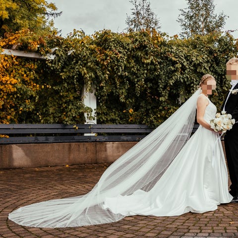 Hääpuku on pesetetty pesulassa ja on tahraton ja moitteettomassa kunnossa. Ovh 1700eur