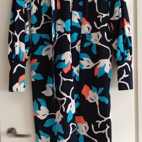 Erittäin vähän käytetty mekko. Koko 38. 100% puuvilla, satiinimainen pinta. Vuorellinen, valkoinen vuori, 50% polyester,50% viskoosi. Vasemmalla sivulla piilovetoketju. Nouto tai postitus.