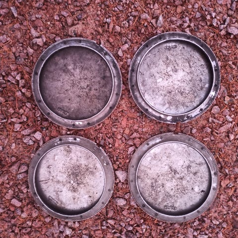 Joutilaana EMS vanteet vanhaan Saabiin. Kiillotusta kaipaavat ja yksi keskiökuppi näyttää puuttuvan.