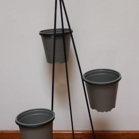 Myynnissä uusia maahanupotettavia telineitä kukille tai ulkotulille. 2 kpl samanlaisia ja 1 kpl erilainen kukka/ulkotulitelineitä.