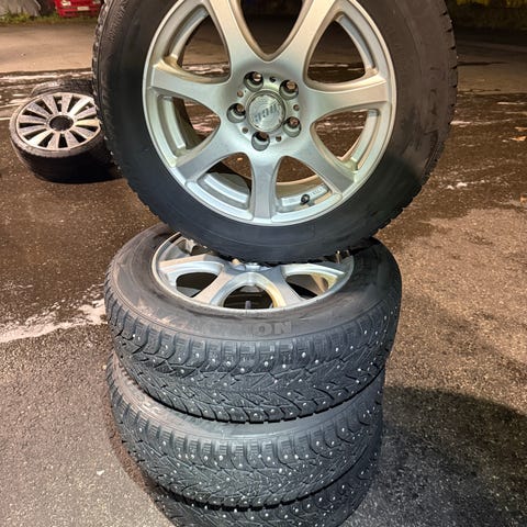 Kuvien mukaiset BBS Montreal kakkoset. Ovat alkuperäiset neloskoppasen GTI golffin vanteet, alkuperäisellä maalipinnalla. Ikäänsä nähden kiitettävän kuntoiset, eivätkä täristänyt ainakaan kun viimeksi oli auton alla. (noin 2v sitten) Päällä 205/55R16 kumit, mutta huomasin, että yhdestä kumista törröttää ruuvi pystyssä, MUTTA näyttää pitävän ilmat sisällä. Toinen pari ainakin kumeista vaihtokunnossa, toisilla varmaan ajaa vielä tämän kesän. Vanteiden specsit: ET 42, leveys 6.5, pulttijako 5x100
