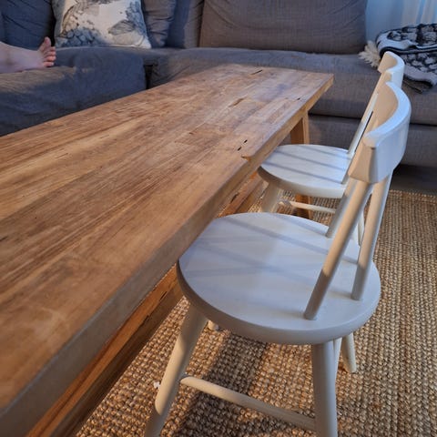 Myyn pöydän ja molemmat tuolit yhteishintaan 150 euroa. En myy kalusteita erikseen.