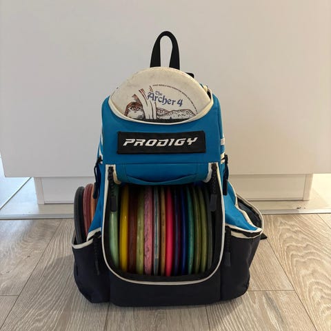 Myydään pari kertaa käytössä ollut Prodigy bagi. Uutta vastaavassa kunnossa. Reppuun mahtuu noin 20-24 kiekkoa, putteritasku, kaksi taskua juomapulloille, vetoketjutasku arvotavaralle.