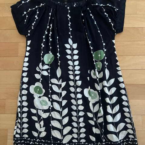 Muutaman kerran käytetty hame. Vyötärön leveys päältä 36cm, kangas ei jousta. Pituus vyötärö-helma 63cm