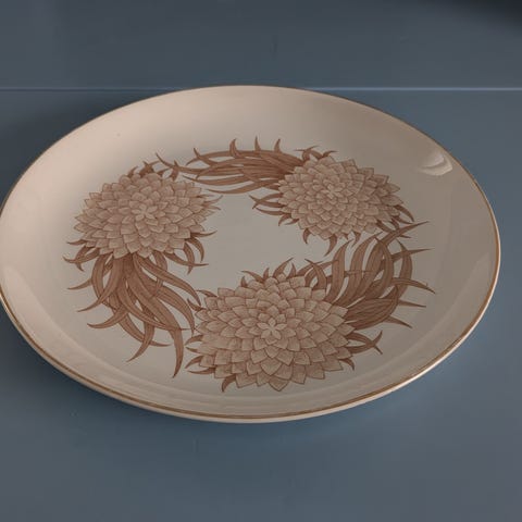 Myyn otsikossa mainittu tarjoilulautanen. Arabian Pulmu sarjaa, suunnitellut Göran Bäck BR, koristeen suunnittelija Raija Uosikkinen. Halkaisija 26 cm. Kruunuleima pohjassa, vuosiluku 8-69, valmistumisvuodet 1969-73. Erittäin hyvässä kunnossa, kultauksessa jonkun verran kulumaa. Myös muuta samasta sarjasta myynnissä, voin tarvittaessa laittaa lisätietoja. Löytyy Vaasasta. Voin postittaa kuluja vastaan.