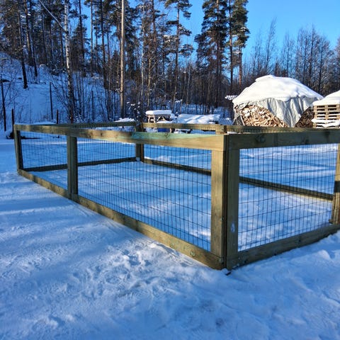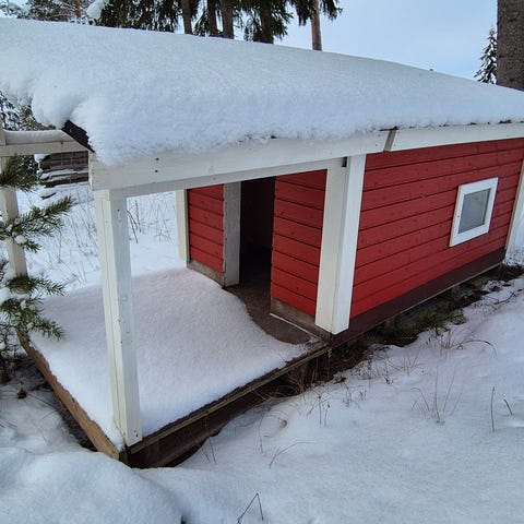 Koira aitaus ja eristetty koppi. Haettuna ja itse purettuna. Mitat 4x4m. Korkeus 180cm. Ovi 50cm. Aitaus ankkuroitu maahan lekasoraharkkoihin joissa kulmaraudat. Ei siis liiku.
