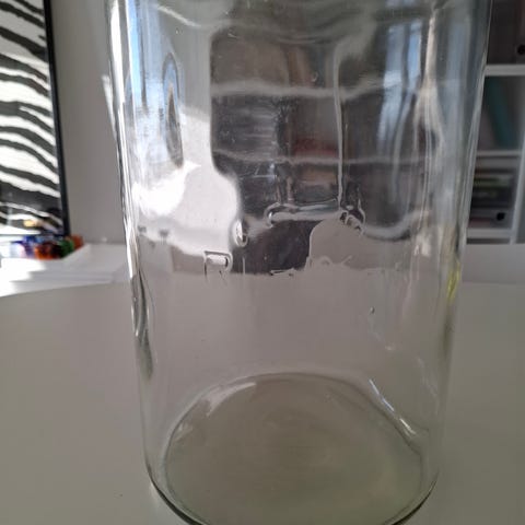 Vanha Riihimäen Lasin valmistama 10L Ihanne narupurkki. Täysin ehjä, mutta vähän on käytön jälkeä.