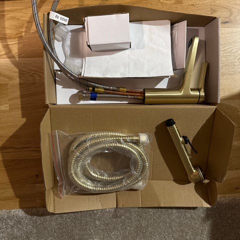 Gustavsberg Nautic kylpyhuonehana pitkällä juoksuputkella, pesukoneventtiili ja bide.