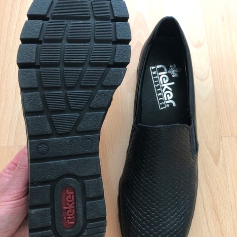 Uudet Riekerin kengät. Ostin aiemmin talvella reissusta, nyt totesin että liian pienet kuitenkin on. Kävelty vai muutamia metrejä sisällä. Nouto Huhtiniemestä tai postitus, diilillä tai ilman.