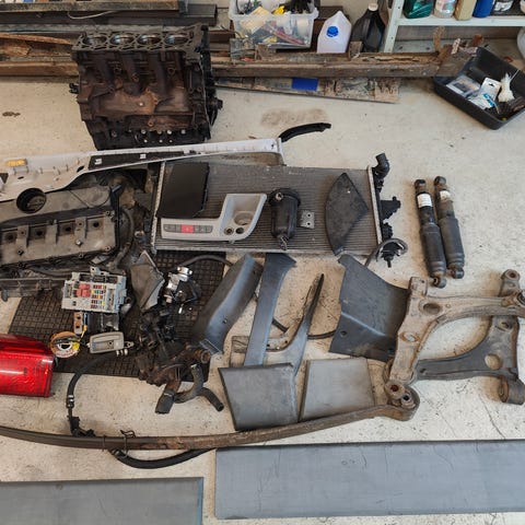 Ei löydy liukuovea, eikä vasenta takaovea, lasinnostimia, eikä niiden käyttökytkimiä. Webasto jo myyty, samoin pakoputki ja katalysaattori, kuskin penkki, oikea ajovalo ja lukkosarja myös myyty.