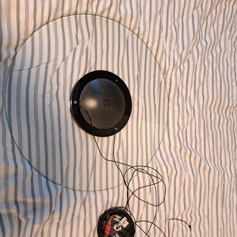 Lampun runko on valkoista lasia ja siinä metallinen reunus