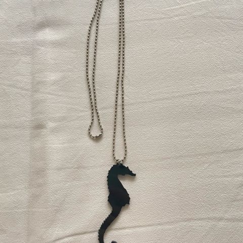 Uusi kaulakoru. Musta ketju ja riipuksessa merirosvo.