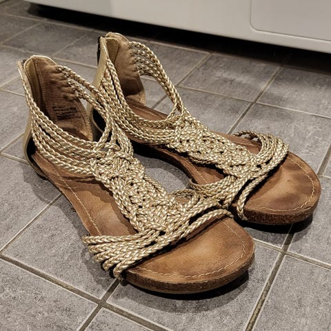 Soveltuu kaikenlaisiin juhliin mekon kanssa tai ihan vain rannalle kävelylle. Kullatut ja todella elegantin näköiset jalassa. Ostin itselleni toiset ja nämä saat hakea pois juhlatilaisuuteen tarvitsevalle :)