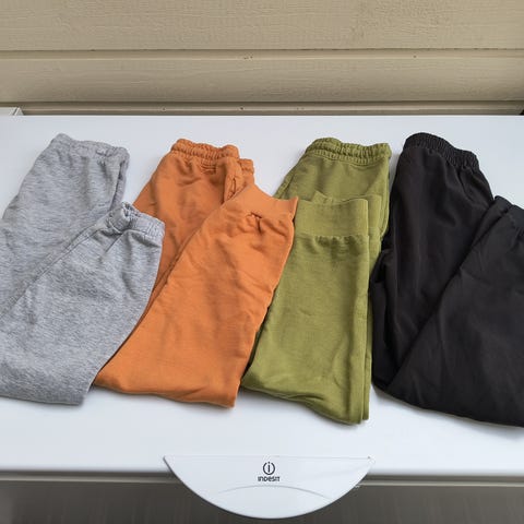 Paljon collagehousuja, housuja, shortseja. Lego, pop ym joukossa. Osa käyttämättömiä, osaa enemmän pidetty. Kaksissa collareissa polven nirhaumaa ommeltu, nämä menevät rymyhousuina.