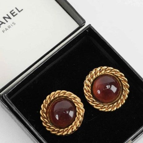 Aidot Vestiaire Collectivesta ostetut Chanelin vintage korvakorut klipsikiinnityksellä. Mukana laatikko. Valmistettu Ranskassa. Sarjanumero/serial number: 97A (1997 Autumn).