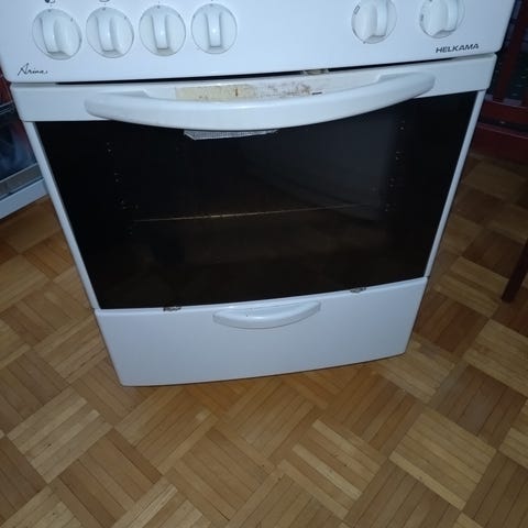 Jaloilla seisova 50cm leveä Rosenlew liesi, jossa kestävät valurautaiset keittolevyt. Mukana ritilä ja kaksi peltiä. Siisti ja toimiva.
