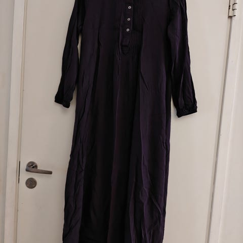 Myynnissä zabai one merkin mekko, jossa pliseerattu viskoosi (?) pinta ja musta alushame. Joustaa, laskeutuu hyvin, ei rypisty. Vähän käytetty, ei moitittavaa. Pesulappu leikattu irti. Vyötäröllä narukiristys, narun saa myös pois. Hihansuissa kuminauhat. Musta, viininpunainen ja vaaleanruskea väritys.