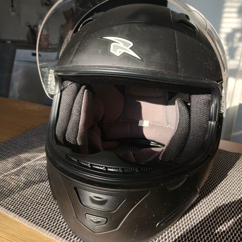 Musta Whitewalls koko S 55-56 cm. Kunto hyvä. Mukana lasit ja hanskat.