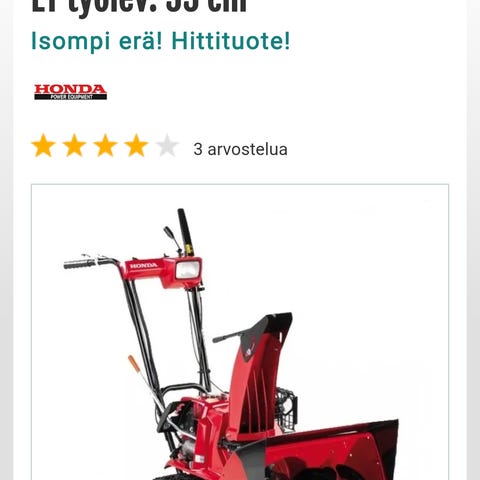 Työleveys 62 cm, korkeus 54,5 cm, suurin heittomatka 15 m