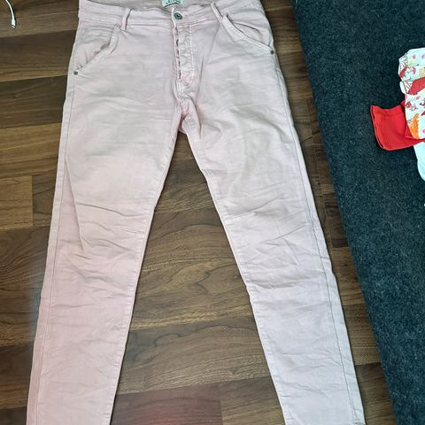 Mukavat, kevyet ja joustavat kesäfarkut. Vyötärönympärys venyttämättä 85cm, mutta materiaali on joustavaa, myös siis vyötärönauha joustaa.