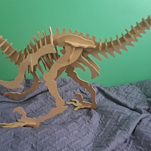 Dinosaurus, joka kootaan vaneripaloista, kuva löytyy myös. Kaikki osat irtonaisia