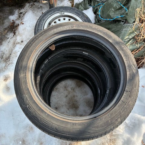 2kpl 195 55 16 87H pintaa noin 4mm halkeamia on toinen korjattu madolla halvalla lähtee