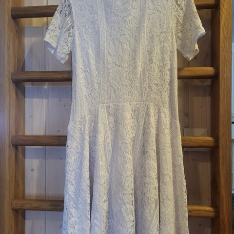 Kaunis valkoinen mekko pitsiyksityiskohdilla