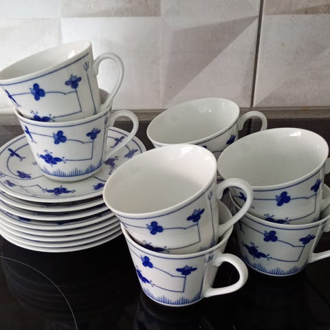 10 asettia ja yksi kuppi, samaa sarjaa. Siistit ja ehjät.