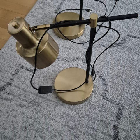 Kuvan mukainen kullanvärinen pöytä lamppu, yksi roikkuva koriste puuttuu
