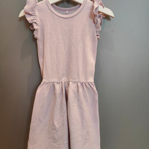 Metsolan froteinen vinoraita mekko, jossa levenevä helma. Kivasti asettuu päälle ja joustaa. Koko 98/104 cm.