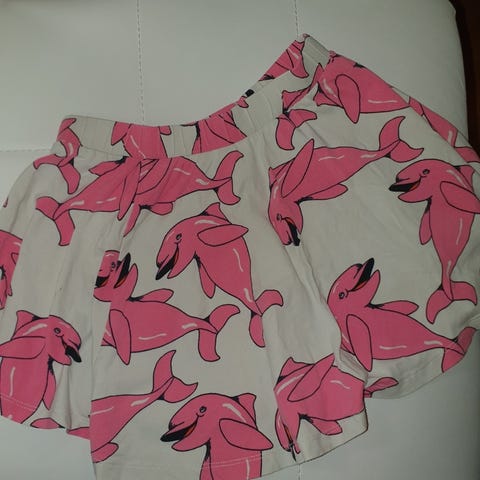 Mini Rodini beige/harmaa kellohame kokoa 104cm/110cm, vastaa mielestäni kokoaan. Ehjä ja siisti, yksi haalea pieni tahra sivussa, näkyy vain kun tarkkaan katsoo, kts.lisäkuva. Yleisilme siisti.