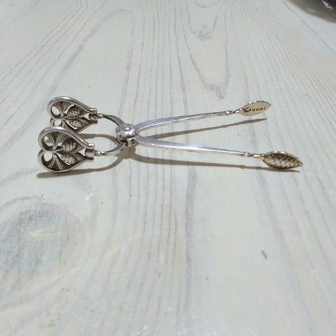 Upeat mustat hohtimet tai ehkä ennemminkin sokeripalaottimet, joissa kummallakin puolella pantterinpää. 1970- luku tai vanhemmat. Hiukan kuluneet, mutta muuten erittäin hyväkuntoiset. Todella upea muotoilu!