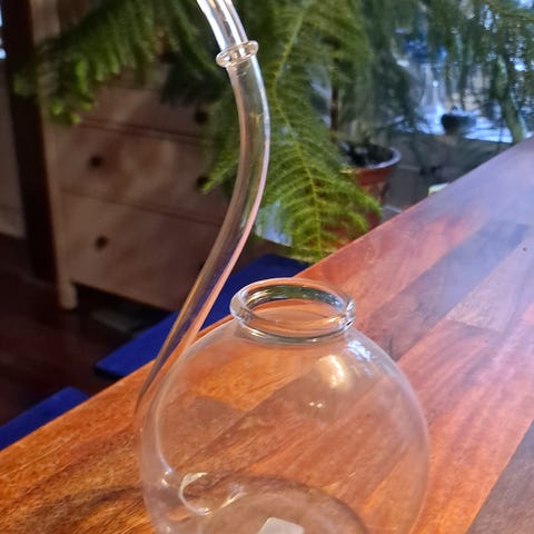 Lasinen Muurlan valmistama konjakkipiippu erittäin ohutta lasia. Pohjassa Muurla Finland tarra. Lahjaidea konjakin nautiskelijalle. Korkeus 18,5 cm