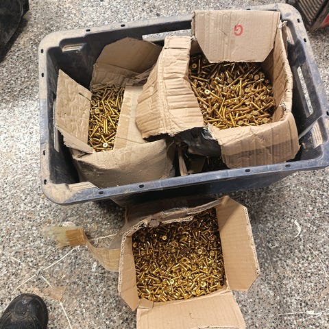 Sekalainen kasa (noin 5kg) kirkkaita (teräs) ruuveja. Ei ruosteisia, mutta jotain pintahapettumaa saattaapi löytyä.