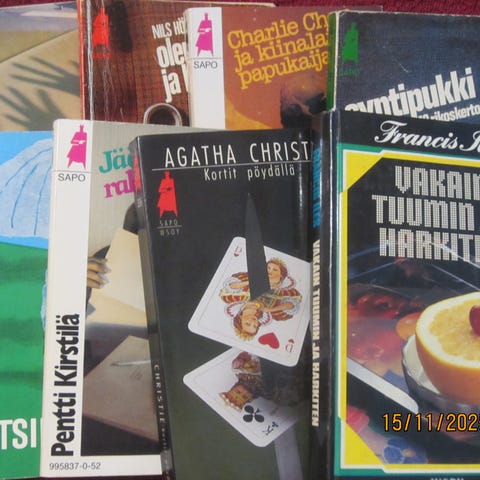 Hyväkuntoisia, osin jopa uudenkarheita pokkareita. Jos on tarkkaa ja kuvista ei selviä niin kysy toki. Nouto Raisio/postitus 7e.